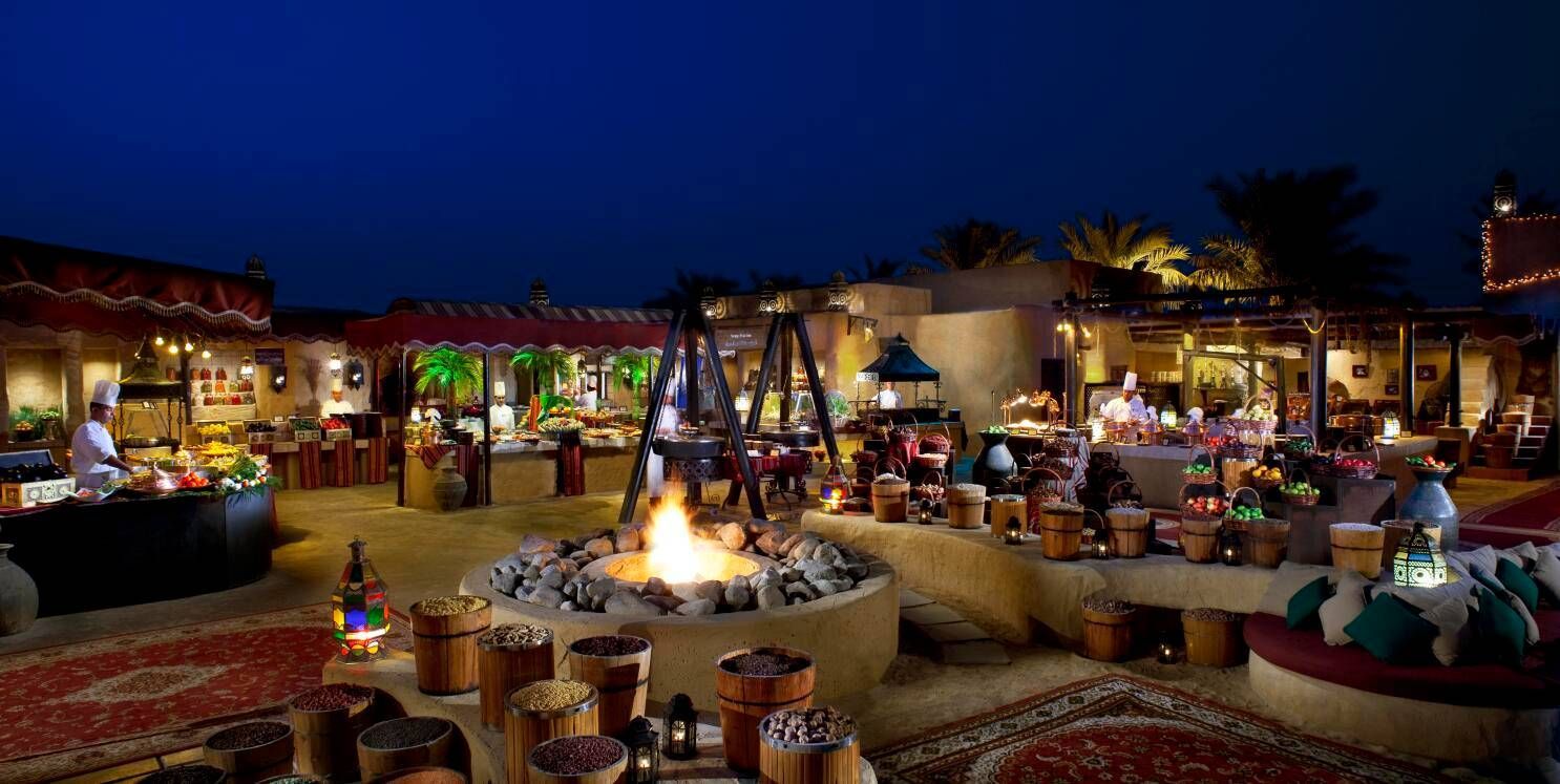 • Arabian style extensive buffet feast at Al Hadheerah with live BBQ and cooking stations, performances and entertainment.