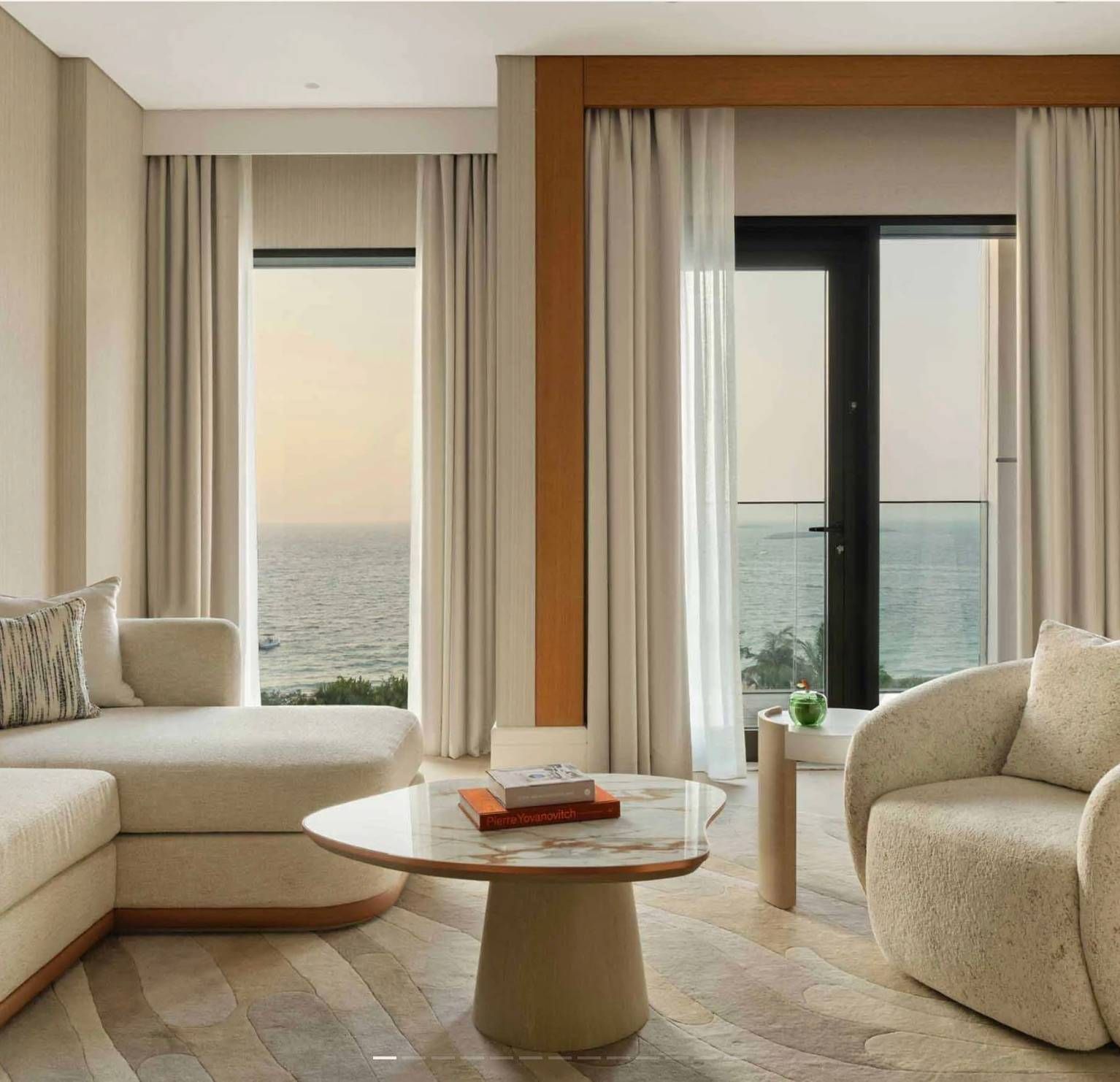 Delano Dubai, Bluewaters is a refined island retreat that balances contemporary design with a relaxed, resort-like ease. Set just offshore from the city, it feels quietly removed yet effortlessly connected, offering sweeping views across the Arabian Gulf with Dubai’s skyline shimmering in the distance. The aesthetic is clean and considered, with light-filled spaces, soft textures and a calm palette that invites you to slow the pace.